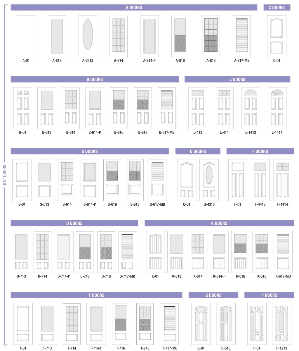 The timeless Classic Collection ranges from flush panels to embossed panels and is available in full glass or without, allowing you to completely customize your space. There are a variety of designs and styles from which to choose.
